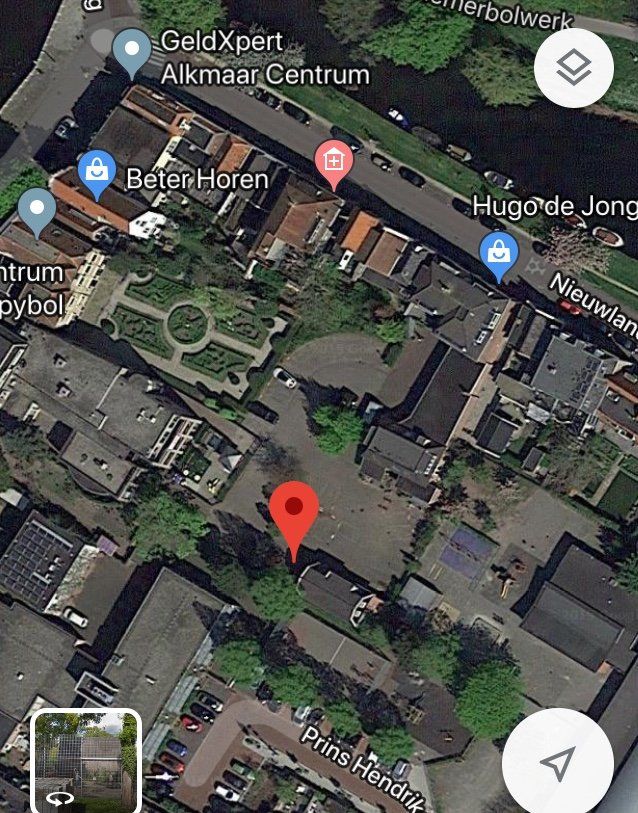 Vlak na nummer 69 onder de garagepoort door op het parkeerterrein links in de hoek